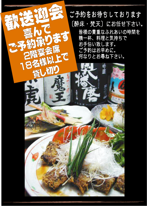 新年会・歓送迎会は、是非 梵天で開催宜しくお願い致します。
