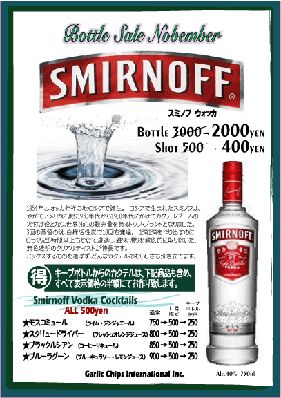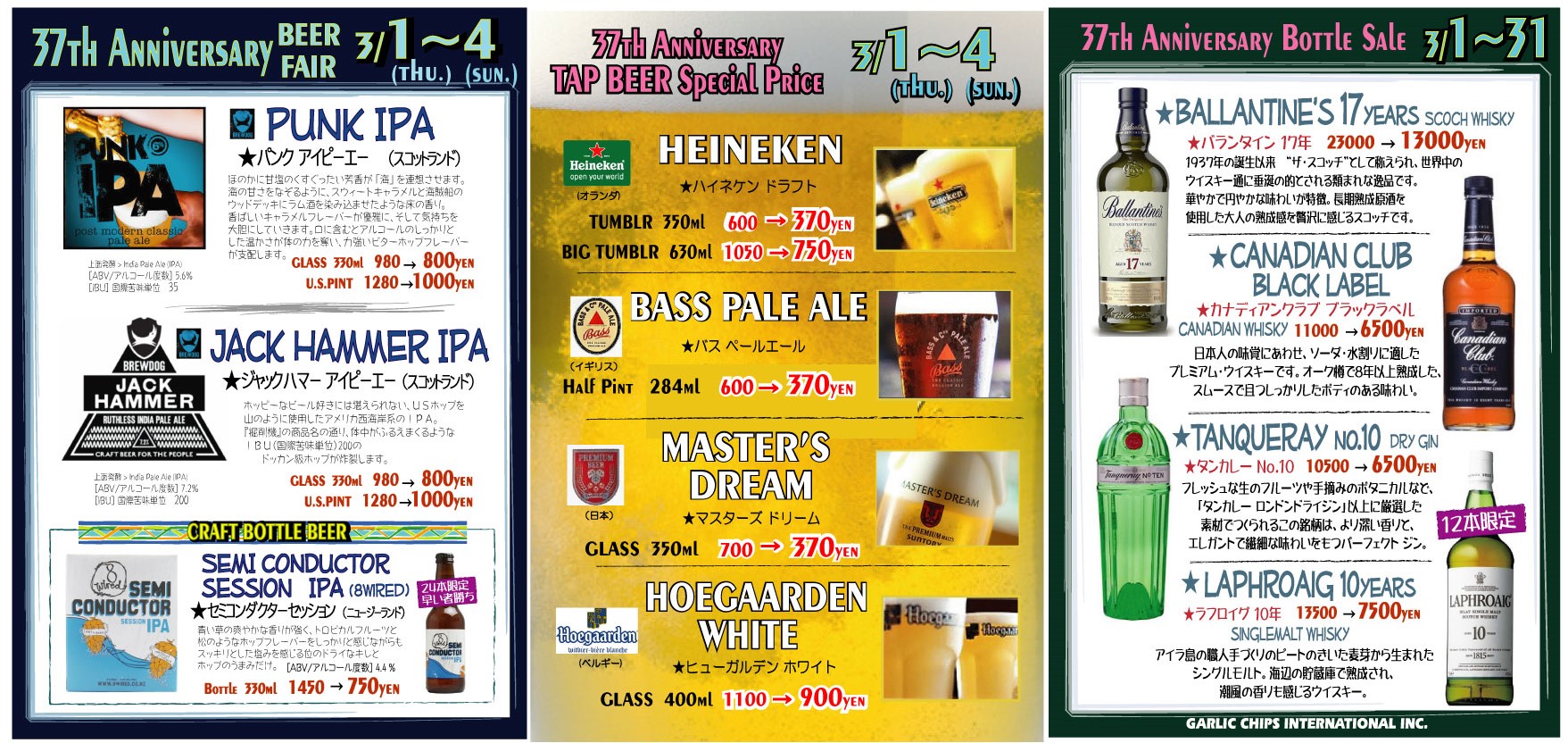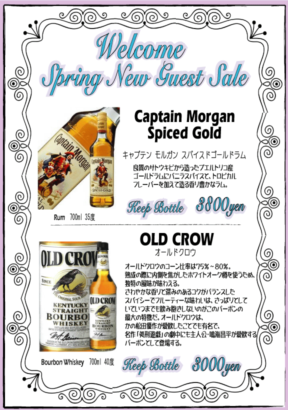 3月中はお得なボトルやビール、ウィスキー、あります!是非お越しくださいっ!!