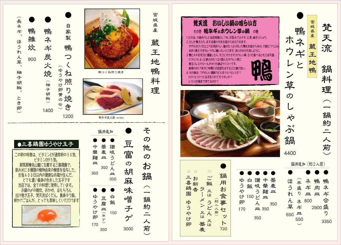 自慢の鴨料理とお鍋